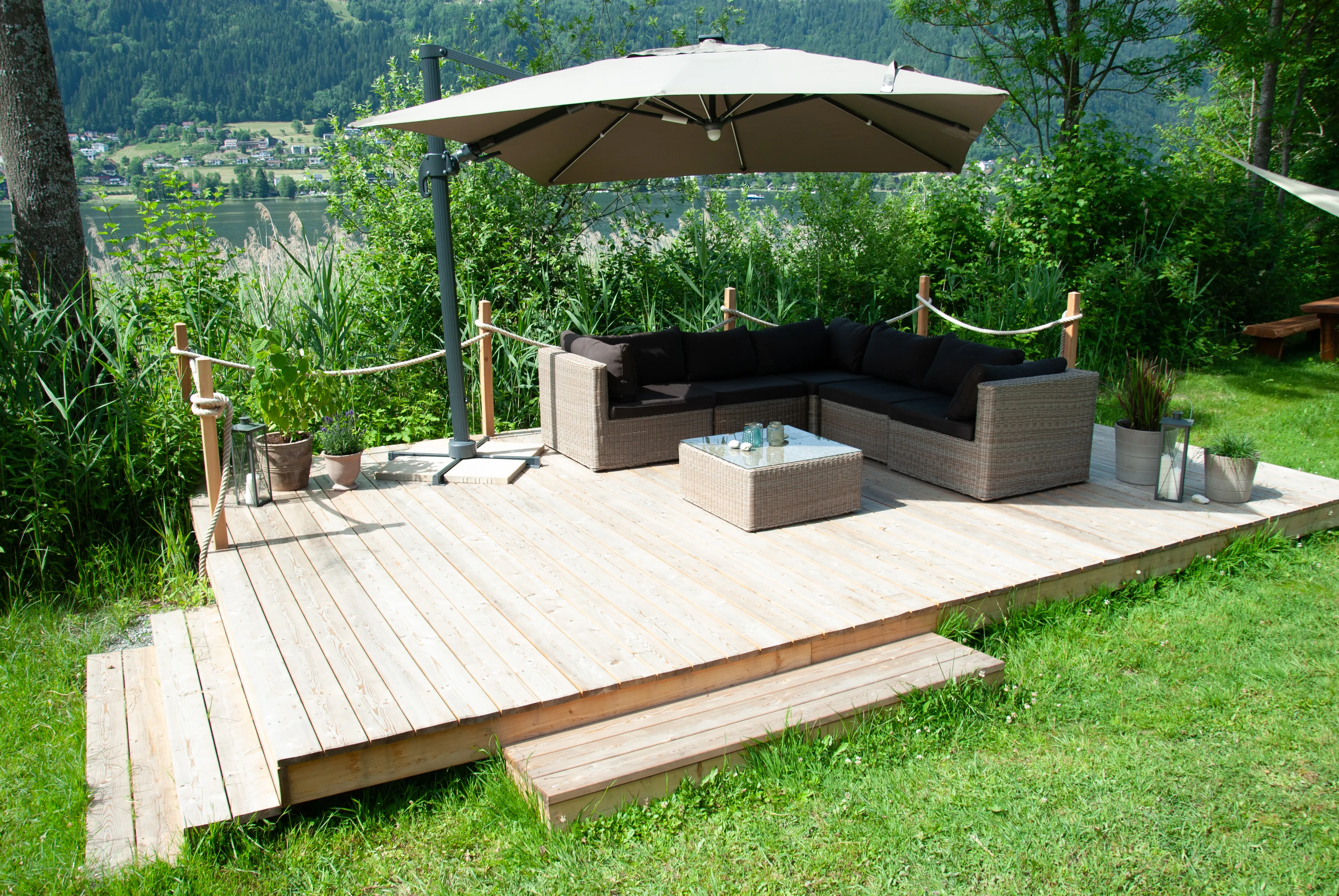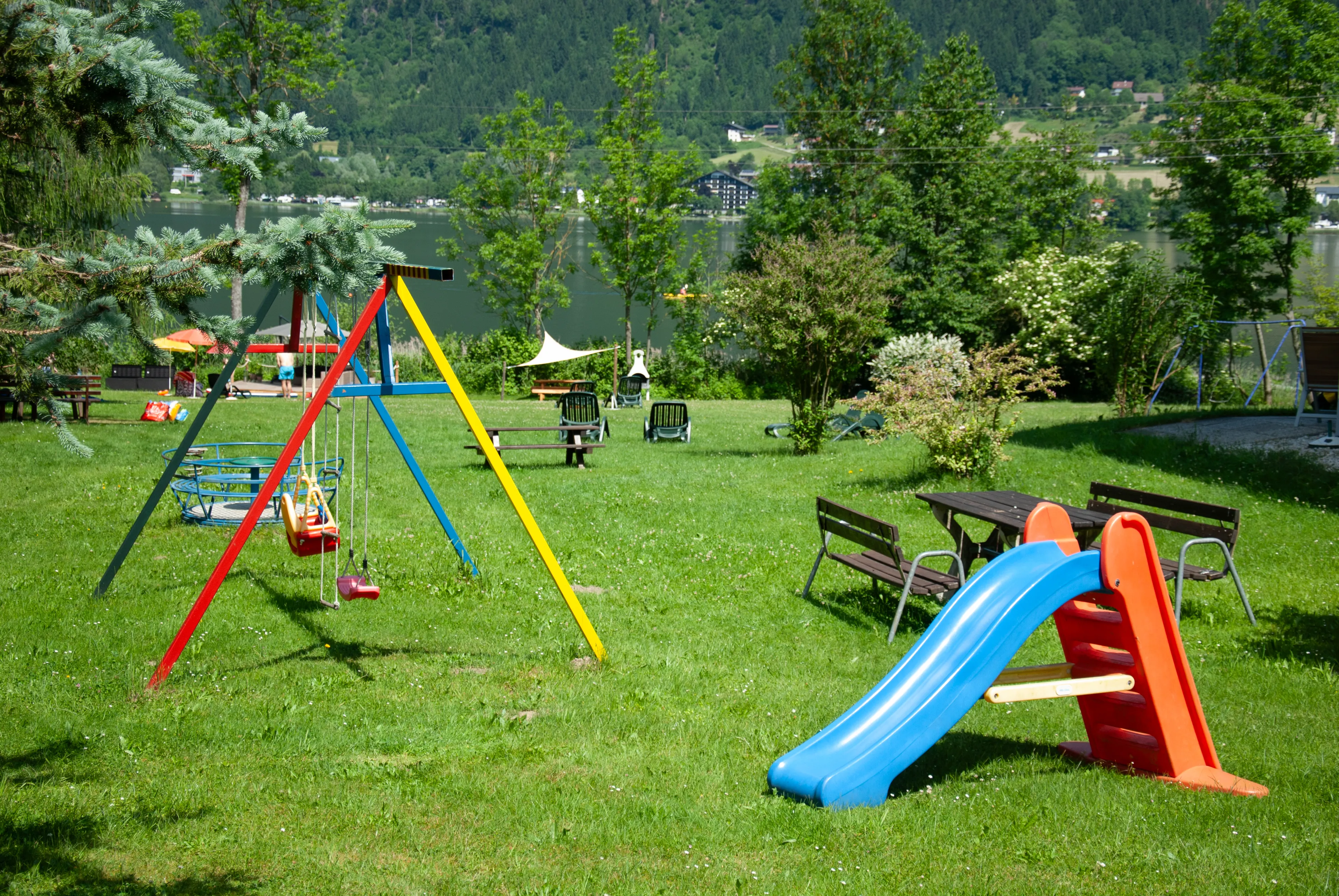 Auf unserer großzügigen Liegewiese direkt am Wasser ist ein entspanntes Nebeneinander möglich: Hier der perfekte Platz für ein ausgiebiges Sonnenbad, da ein schattiges Plätzchen zum Lesen und rundherum genug Raum für Federball, Boccia, Tischtennis, Fußball…