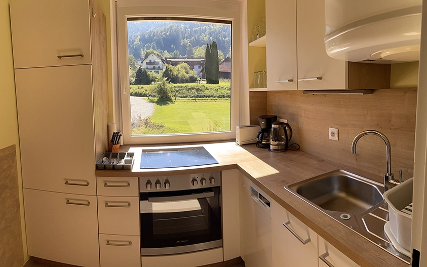 Die Ferienwohnung verfügt über ein Wohnzimmer mit integriertem Essbereich/Schlafcouch, zwei getrennte Schlafzimmer, eine vollständig ausgestattete Küche (inklusive Geschirrspüler), Bad/Dusche/getrenntes WC sowie einen seeseitigen Balkon mit herrlichem Blick auf den Ossiachersee.